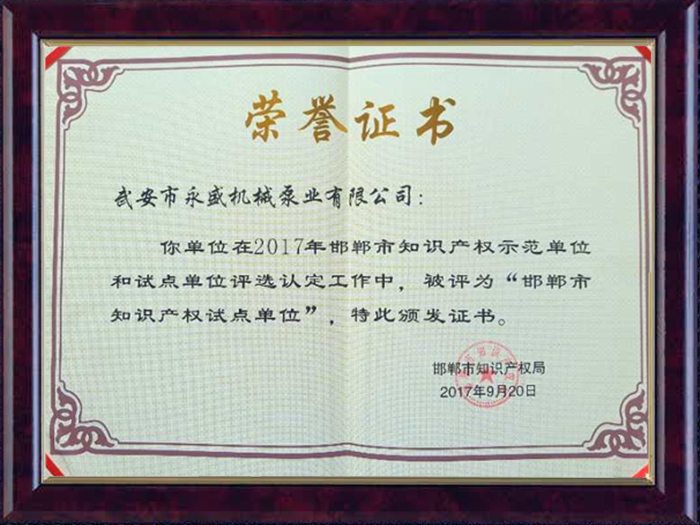 知識產權試點單位證書